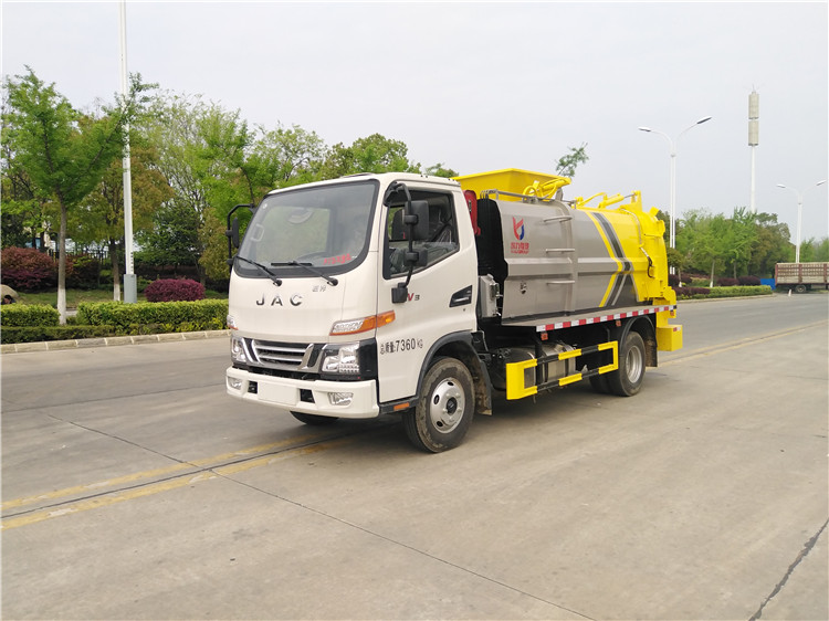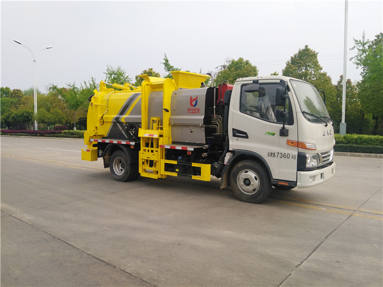 湖北程力國六江淮駿鈴5方餐廚垃圾車(方罐)程力威牌CLW5081TCAH6型餐廚垃圾車 廠家配置: 湖北程力國六江淮駿鈴6方餐廚垃圾車(方罐)底盤配置:江淮駿鈴V6駕駛室2071寬體,3365軸距,云內(nèi)德威163馬力D30TCIF2(120KW),六齒六檔變速箱,動轉(zhuǎn),中控鎖,電動玻璃,多功能方向盤,日間行車燈,空調(diào),斷氣剎,前橋3噸,后橋7.2噸,750R16LT 14PR鋼絲胎。 湖北程力國六江淮駿鈴6方餐廚垃圾車(方罐)改裝標配:(1)弧形箱體,箱體材質(zhì)為4mm。(2)合肥皖液油泵,江蘇多路閥,國產(chǎn)液壓油缸。(3)推鏟卸料(不帶舉升功能),具有干濕分離功能。液壓后蓋,后蓋帶密封條。(4)后門液壓鎖緊。(5)拉桿式提升機,掛240L標準塑料垃圾桶。進料口蓋液壓開關(guān)。(6)駕駛室內(nèi)集中電控(提升機外部手動控制),后門鎖緊與后蓋開關(guān)的操作具有防誤操作。(7)箱體帶清洗裝置(液壓馬達帶動高壓泵、帶水箱) 湖北程力國六江淮駿鈴5方餐廚垃圾車(方罐)程力威牌CLW5081TCAH6型餐廚垃圾車圖片價格: