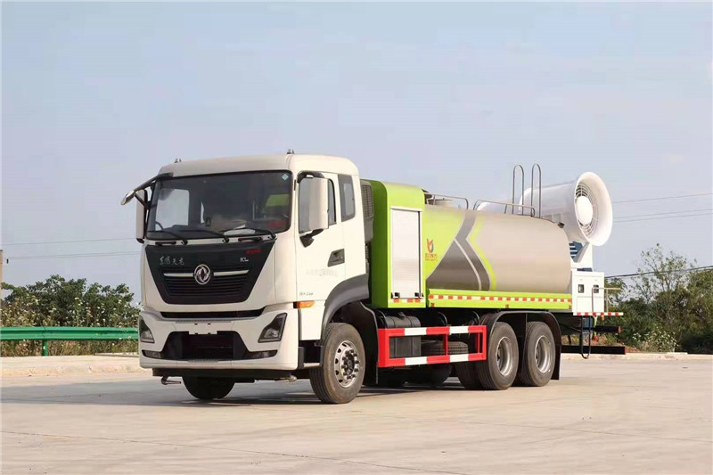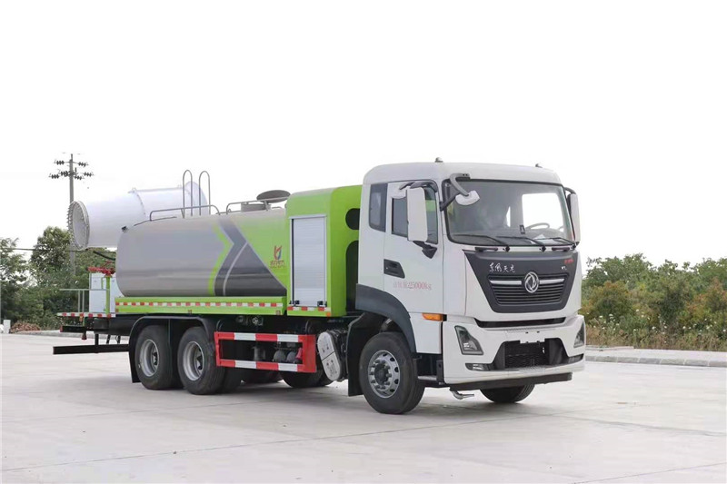 程力專用汽車股份有限公司國六東風天龍后雙橋多功能抑塵車,采用東風天龍后雙橋底盤,配國六康明斯290/300/350馬力發動機,4350+1350mm軸距,11.00R20鋼絲輪胎,陜齒9檔變速箱,7噸前橋,10噸后橋,助力轉向,電動玻璃,斷氣剎,原廠空調,氣囊座椅,ABS,定速巡航,行車記錄儀等。罐體容積16噸,罐體采用外防銹內防腐處理,武鋼5mm優質碳鋼板制成。進水方式可自抽,消防接口,罐頂自流三種方式,標配前沖后灑,側噴花灑,罐體后工作平臺,平臺上安裝灑水炮和車載噴霧炮,雙炮均可全方位旋轉,霧化效果可調節,可選配60--120米噴霧機。