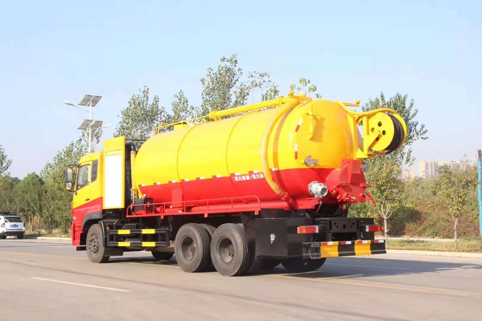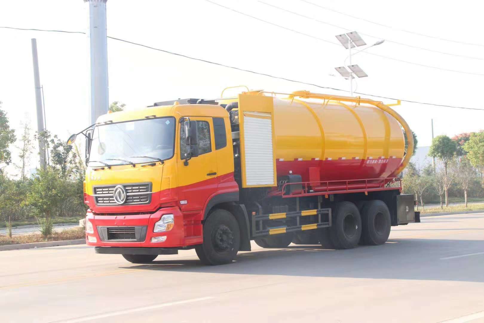 湖北程力東風天龍后雙橋清洗帶吸污多功能聯(lián)合疏通車介紹: ✅ 底盤部分:東風天龍后雙橋底盤,康明斯ISD270馬力,D901排半標準頂駕駛室,軸距4350+1350,法士特9JS119T-B變速箱,11.00R20 18PR輪胎,5.5噸前橋,雙10噸后橋(速比4.44),原廠空調,ABS,調整臂,大燈調節(jié)。 ✳ 吸污部分:配濰柴375馬力30水環(huán)泵(或者濰柴420發(fā)動機帶42水循環(huán)泵, 或者濰柴420發(fā)動機帶252/253型號水環(huán)泵,價格有區(qū)別需要電議),加大防溢閥, ✳ 清洗裝置:配天津通潔300升高壓泵, 60米PVC雙層高壓管22通徑高壓管,10個高壓噴頭,兩個水泥蓋,頂部100的互通,水污互通用100的球閥。 水罐3寸球閥安在罐體最底部.水倉污倉罐體內噴防銹,后封頭600的液壓口,一個6寸自流,一個4寸的進料口,一個4寸的排污口,側面一個6寸的球閥偷排。后蓋加裝活動可拆式卷盤壹套,右后側一套卷盤,罐體采用8個厚鋼板制作,后蓋上帶一個600液壓口排污,300側邊自流口。 湖北程力東風天龍后雙橋清洗帶吸污多功能聯(lián)合疏通車公告參數: